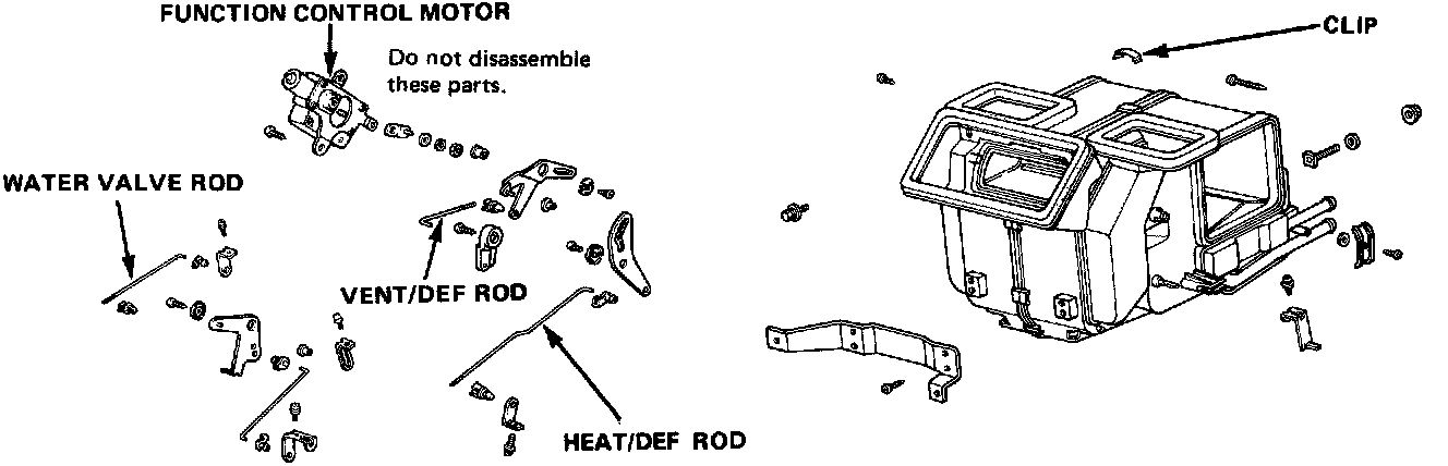 Heater Assembly OverhaulCAUTION: Do not remove the linkage which is installed on the function control motor.