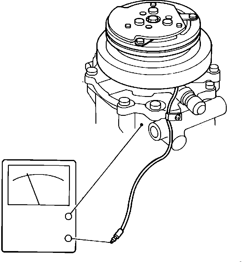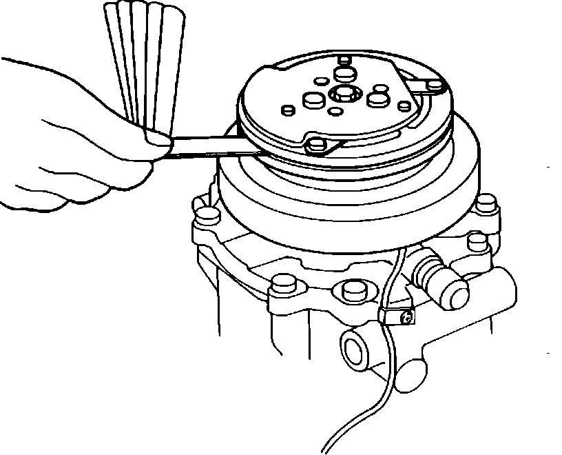 1. Rotate compressor pulley by hand and check for excess bearing play and drag. Replace pulley as required.