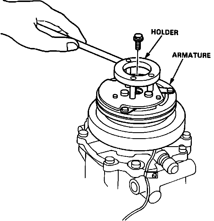 3. Pull armature out of compressor with hands. If armature cannot be removed with hands, proceed as follows: