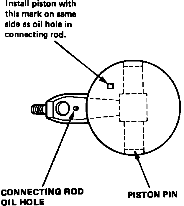 On 1984-85 Accord and 1984-87 Prelude with carbureted engine, assemble piston onto connecting rod so that mark(s) on piston head are on same side as oil hole, Figs. 28 and 29, and install piston/rod assemblies with connecting rod oil hole facing intake manifold side of engine. On 1986-87 Accord and Prelude with fuel injected engine, assemble piston onto connecting rod so that in installed position arrow on piston head will face the timing belt and connecting rod oil holes will face intake manifold side of engine, Fig. 30.