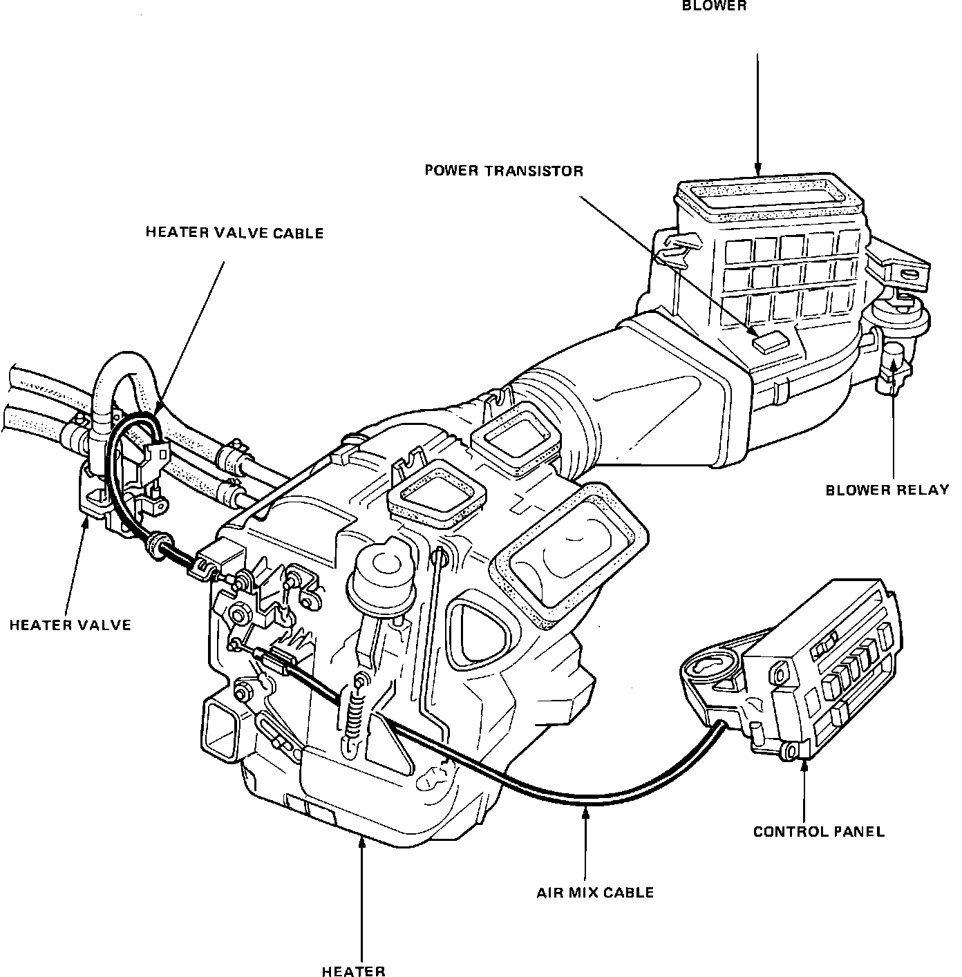 Floor/Defrost Solenoid Valve: Behind center of dash, on upper RH side of heater housing