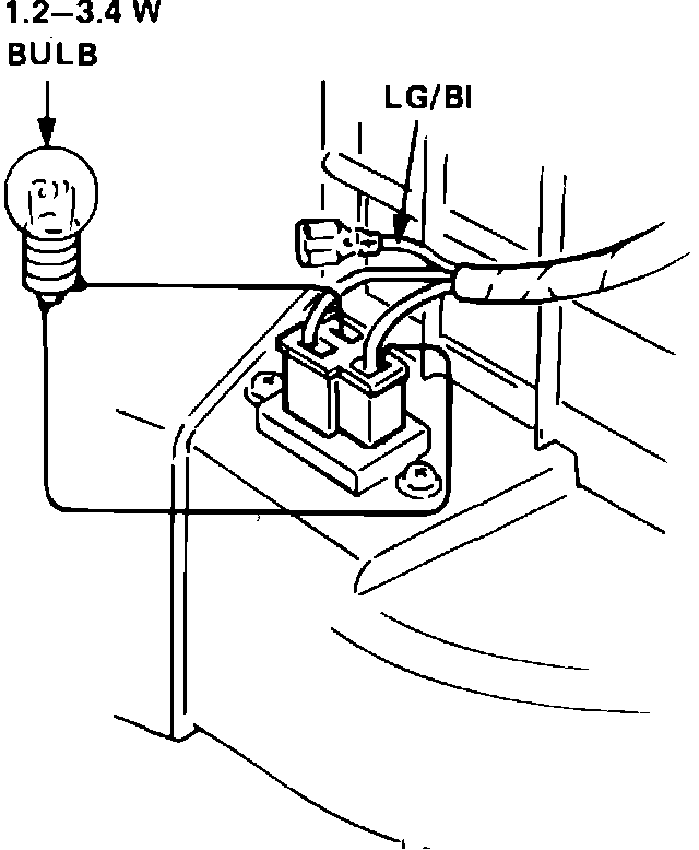2. Disconnect wire harness from transistor. Remove the light green/blue lead from connector and connect a 1.2-3.4 watt test lamp as shown in Fig. 30. Then, reconnect wire harness to transistor.