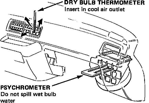 3. Start engine, open hood, front doors and windows, place temperature control at MAX COLD, mode control in VENT position and air selector in recirculation, and operate blower at maximum speed.