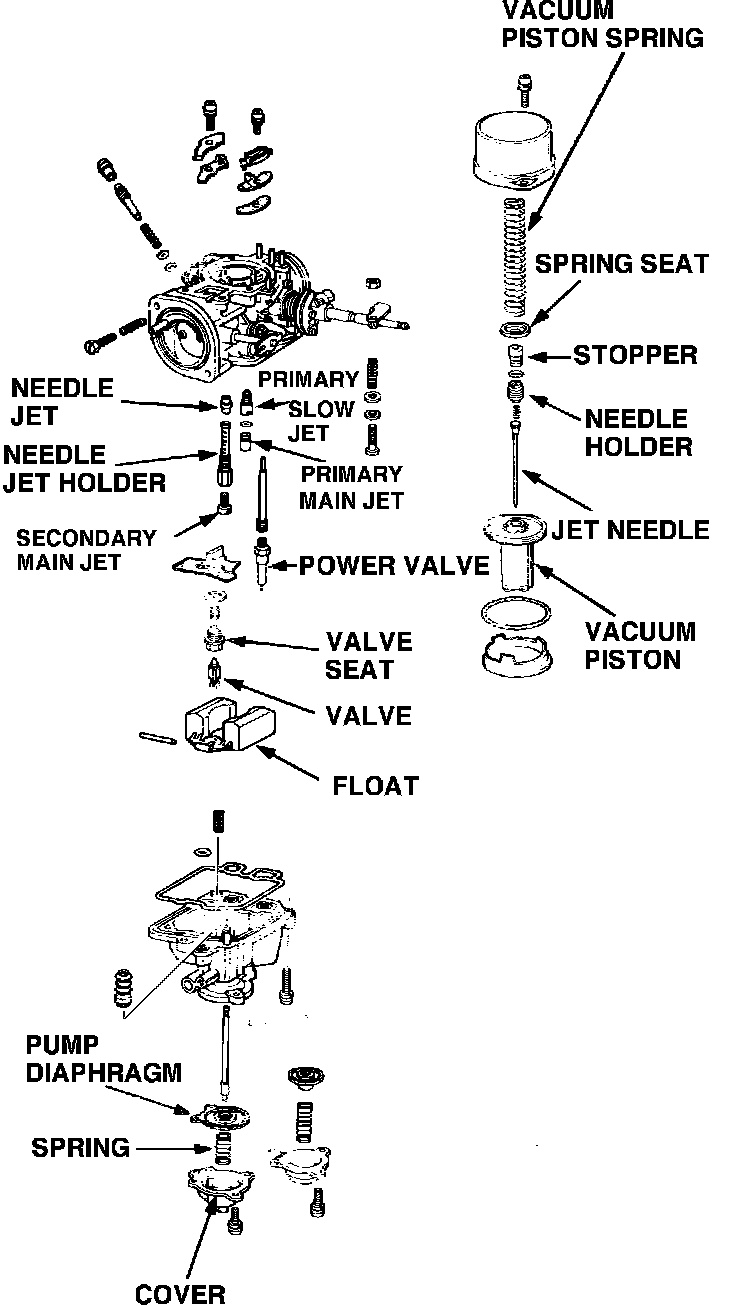 Fig. 2 Carburetor assembly exploded view.: