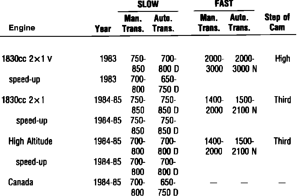 Fig. 008 Idle Speed W/O Computer Control Specifications 2x1 V:
