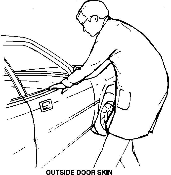6. Pull (by hand) on the outside door skin at the center of the window opening until it conforms with the curve of the glass.