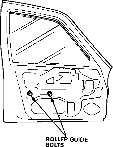 8. Roll the window up half way and loosen the roller guide mount bolts. Adjust the roller guide to a "neutral" position. Retighten the bolts and check for ease of window operation. Readjust the roller guide if necessary.