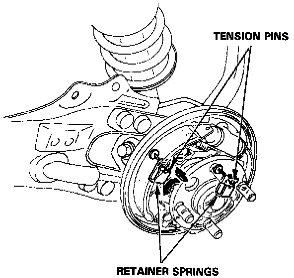 2. Lower the brake shoe assembly and remove the lower return spring.