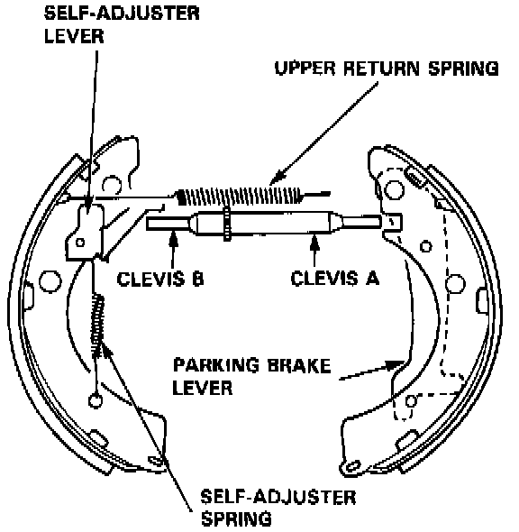 5. Remove the upper return spring, self-adjuster lever and self-adjuster spring, and separate the brake shoes.