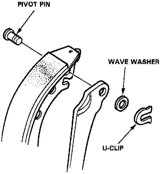6. Remove the wave washer, parking brake lever and pivot pin from the brake shoe by removing the U-clip.