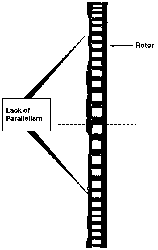 - Excessive lateral runout (warpage) or lack of parallelism (rotor thickness variation).
