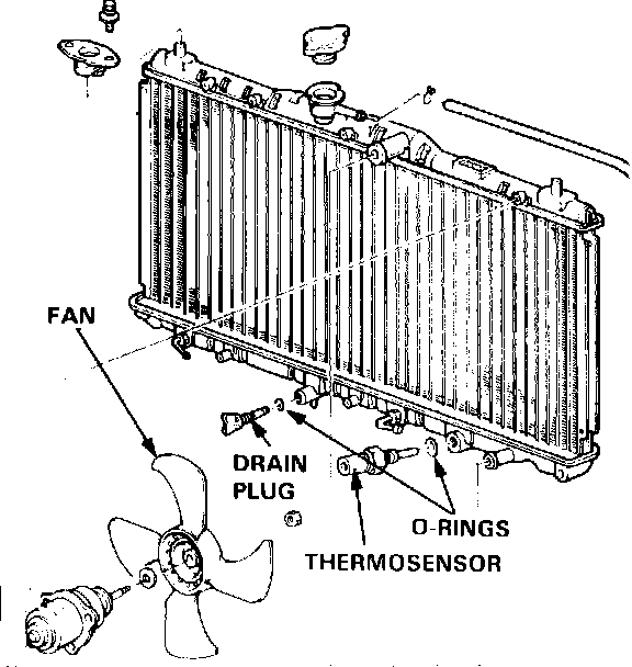 2. When the radiator is cool, remove the cap and drain plug, and drain the radiator.