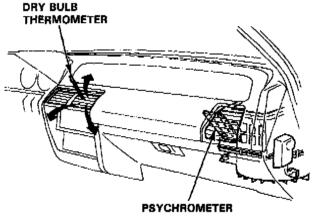 2. Insert a dry bulb thermometer in the cold air outlet, and place the psychrometer (dry and wet bulb thermometer) close to the inlet of blower. Do not spill wet bulb water.