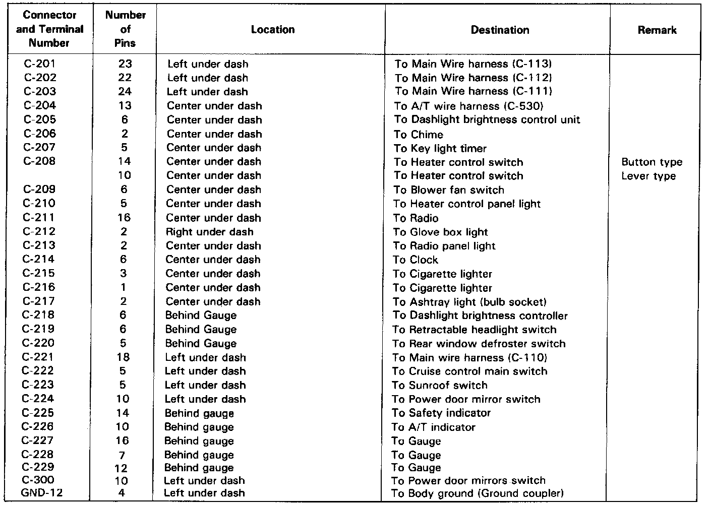Dashboard Wire Harness Index: