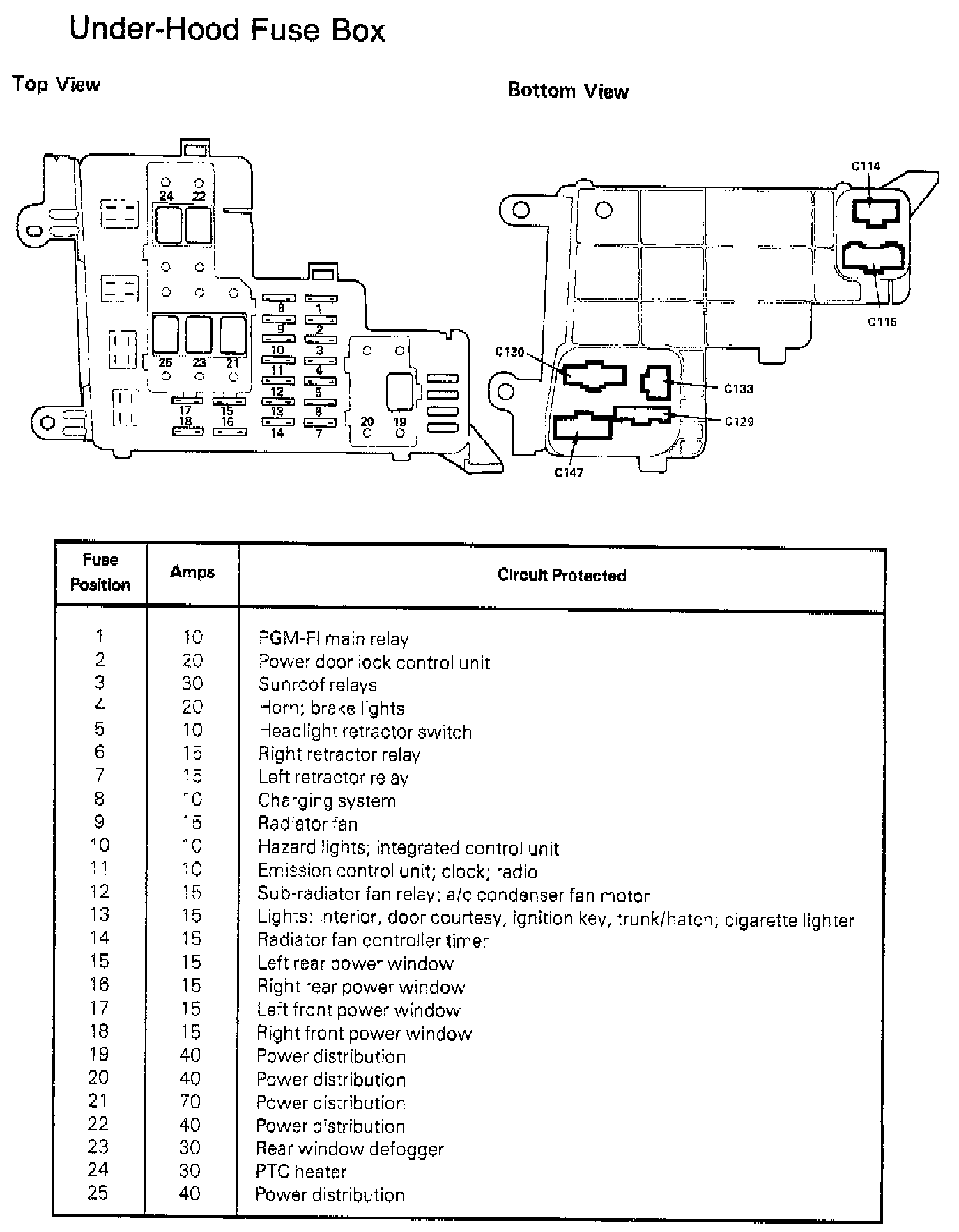 Underhood Fuse Box Details (Carb & EFI Models):