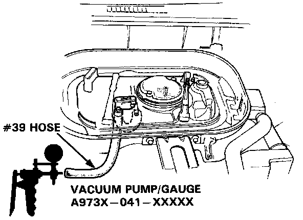 1. Disconnect # 39 hose from the vacuum hose manifold and connect a vacuum pump to the hose.