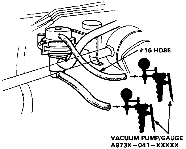 1. Disconnect # 16 hose from air control valve A and connect a vacuum pump to the hose.