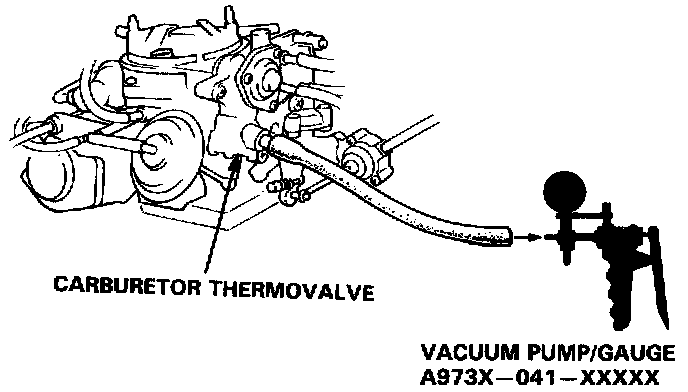 1. Disconnect the hose at the carburetor thermovalve and connect a vacuum pump to the thermovalve.