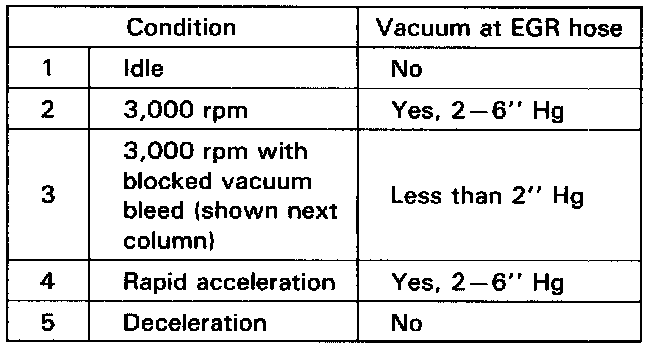 - If vacuum is more than 2" Hg in condition 3, replace the EGR control valve and check the vacuum hoses for proper routing and connections.