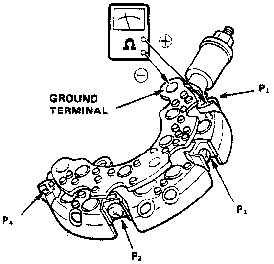 3. If any of the 16 checks shows continuity in both directions, or no continuity in both directions, the diode is defective and the rectifier assembly must be replaced. (Diodes are not available separately.)