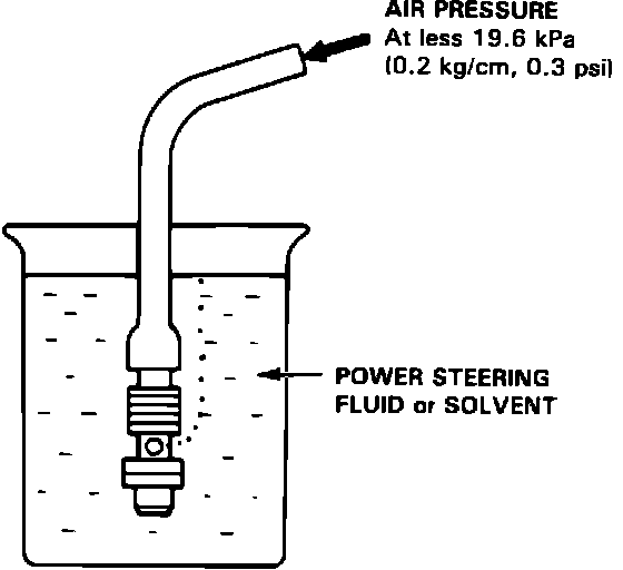 3. Submerge valve in a container of power steering fluid or solvent. Blow on the hose, if air bubbles leak through the valve, proceed with test.