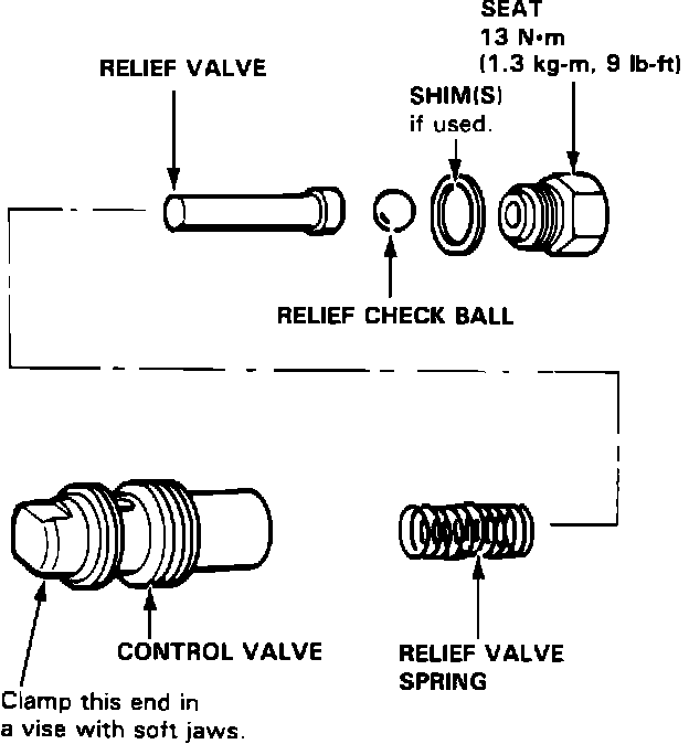 5. Unscrew seat in top end of valve. Remove shims (if used), relief check ball, relief valve and relief valve spring.