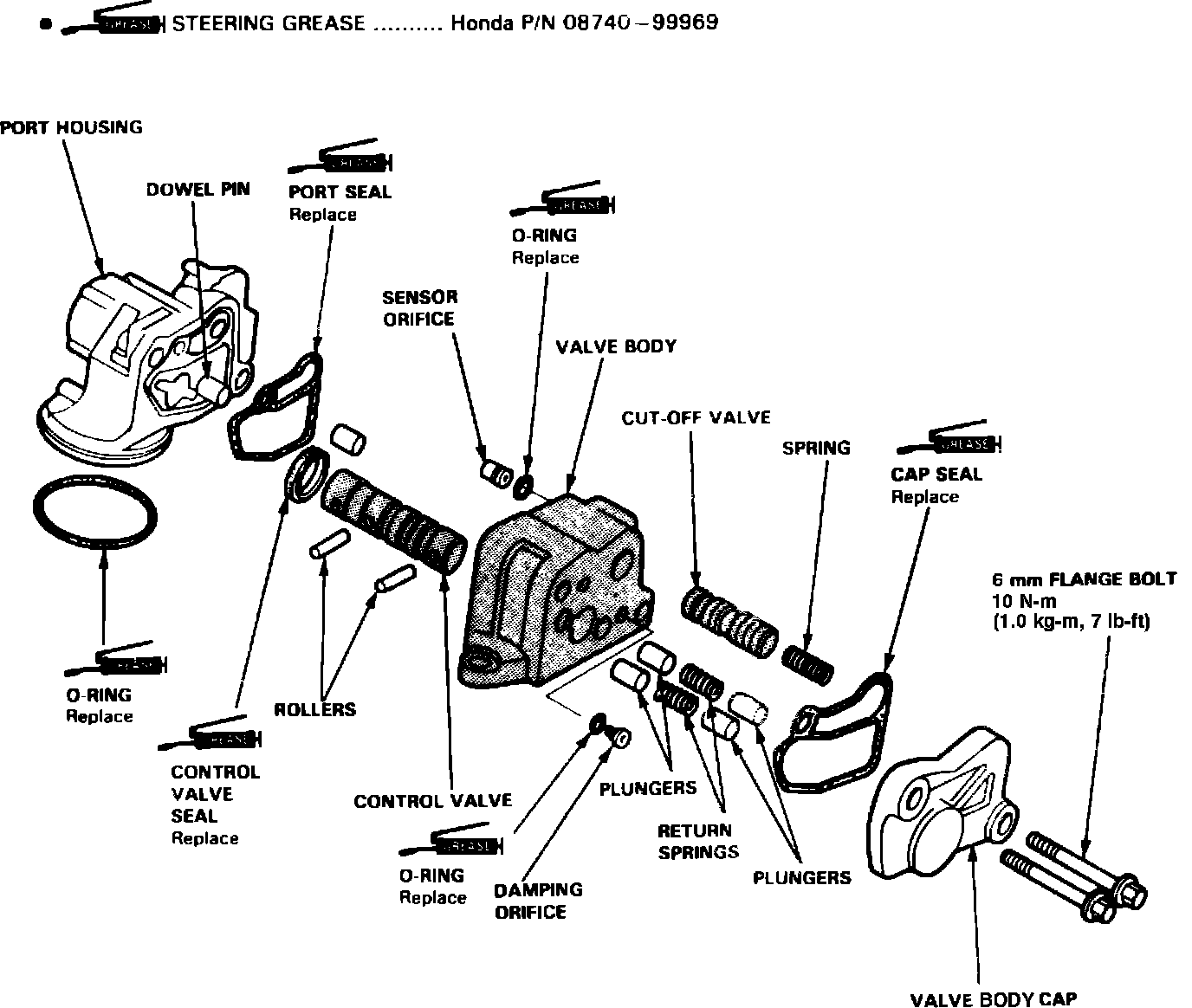Replace all O-rings and seals, and coat friction surfaces with power steering fluid during assembly.