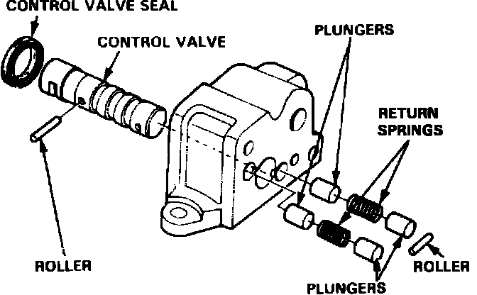 6. Remove rollers from control valve by pushing control valve out one side of housing then the other. When removing rollers, hold plungers with fingers to prevent them from popping out.