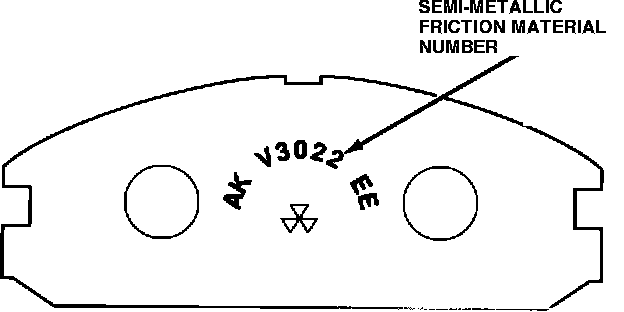 The original-equipment brake pads are semimetallic, which offer the longest service life, but are more prone to moan or squeal when the brakes are applied lightly. These pads are numbered "AK V3022 EE" on the back to identify the friction material.