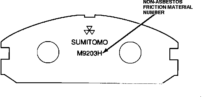 The optional non-asbestos brake pads are less likely to make noise, but won't last as long as the semimetallic brake pads. These pads are numbered "M9203H" on the back to identify the friction material.