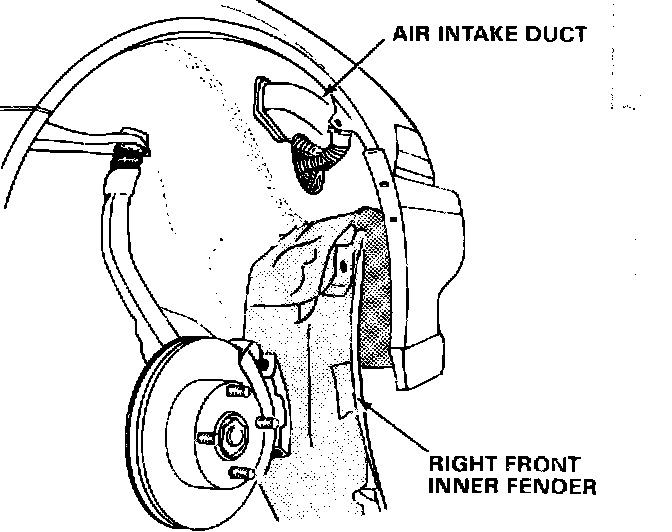 7. Remove enough of the right front inner fender to be able to reach the air intake duct.