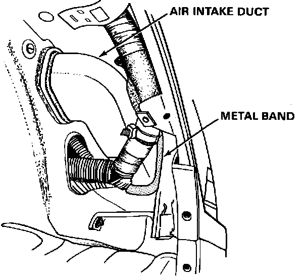 NOTE: Be sure the air intake duct fits into the metal band in the body.