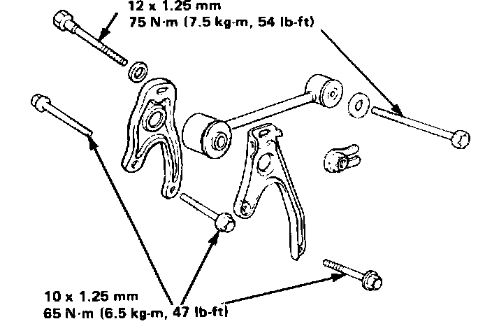 14. Connect shift lever torque rod to clutch housing and torque 8 x 1.25 mm bolt to 22 N-m (2.2 kg-m, 16 lb-ft).
