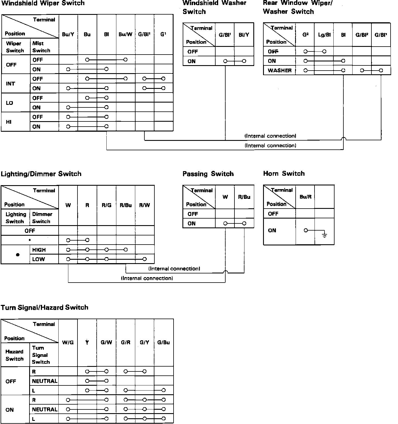 2. Check continuity between all terminals shown on testing chart, observing switch positions indicated.