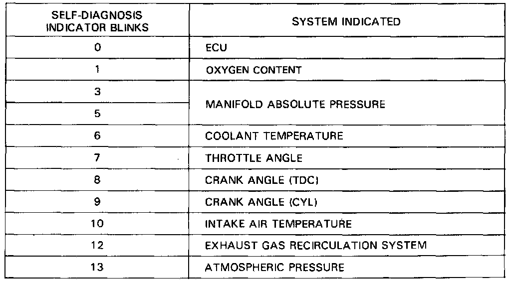 CODE 2, 4, 11, or exceeds 13: count the number of blinks again, if the indicator is in fact, blinking these codes, substitute a known-good ECU and re-check. If the indication goes away, replace the original ECU.