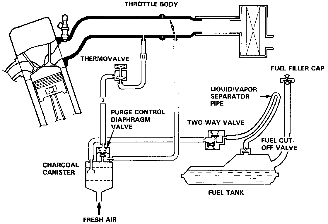 The evaporative controls are designed to minimize the amount of the fuel vapor escaping to the atmosphere. The system consists of the following components: