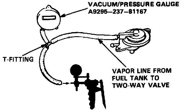 2. Remove vapor line from the fuel tank and connect to T-fitting from vacuum gauge and vacuum pump as shown.