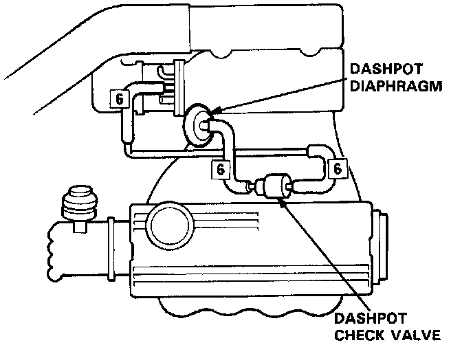 Dashpot System Test1. Check the vacuum line for leaks, blockage or a disconnected hose.