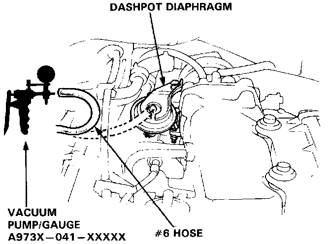 2. Disconnect # 6 vacuum hose from the dashpot diaphragm, and connect a vacuum pump/gauge to the hose.