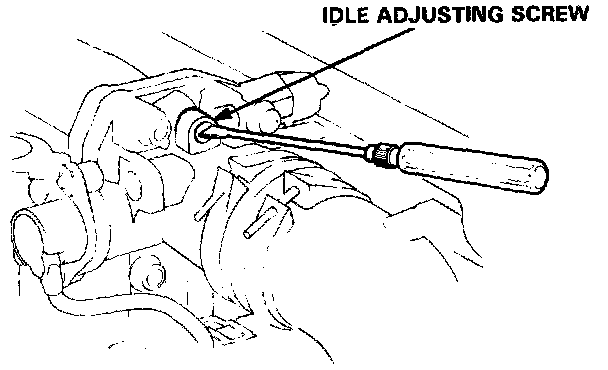 Adjust the idle speed, if necessary, by turning the adjusting screw on the top of the throttle body.