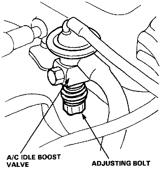 Adjust idle speed, if necessary, by turning the adjusting bolt on the A/C idle boost valve.