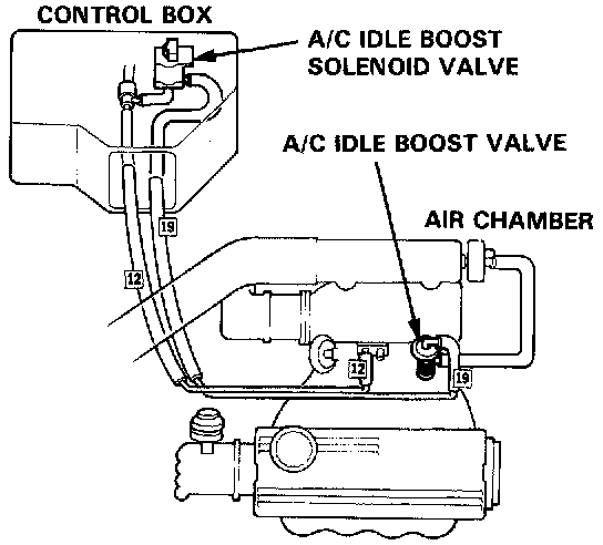 - If there is vacuum, disconnect the # 19 vacuum hose from the A/C idle boost valve and connect the vacuum gauge to the hose.