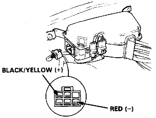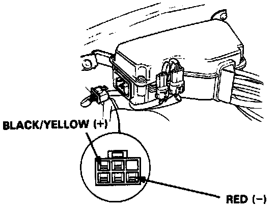 - If there is no voltage, attach the positive probe of the voltmeter to the Black/Yellow terminal, and the negative probe to body ground. Check for voltage.