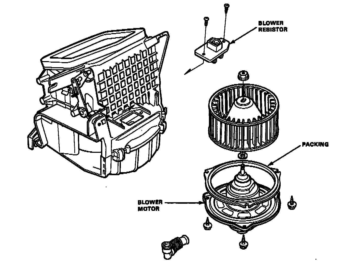 6. Disconnect the connectors from the blower motor. resistor then remove the blower.