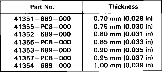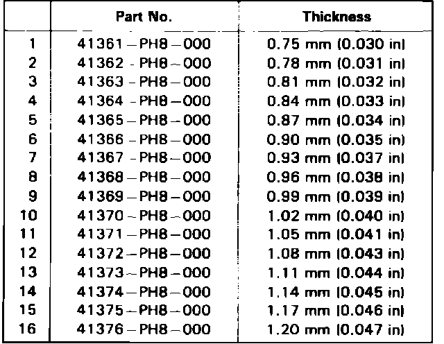 b. Example; Value obtained in step 15 is 0.85 mm, mark on pinion is plus 2, 0.85 mm - 0.02 mm = 0.83 mm shim thickness. Refer to Fig. 5 for pinion shim selection chart.
