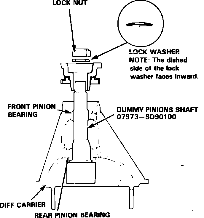 11. Install companion flange, lock washer and locknut on dummy pinion shaft.