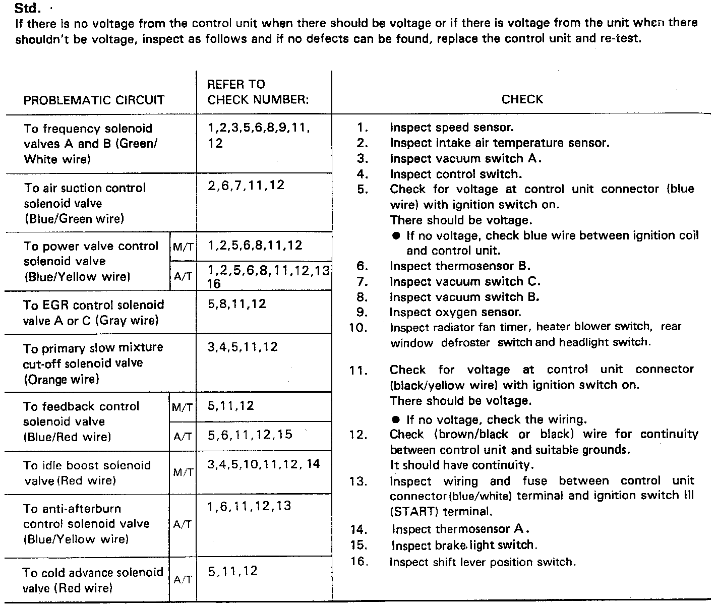 5. If both solenoid valves do not operate, check for voltage at green/white wire while running engine at approximately 2500 RPM.