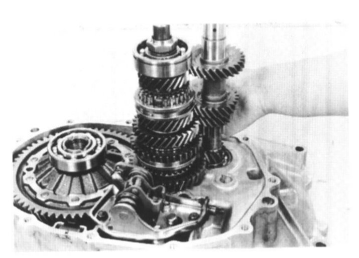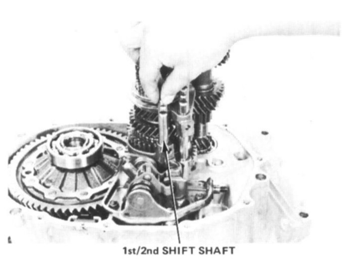 NOTE: To ease reassembly, lightly oil the shift shafts, transmission shafts, and differential bearings.