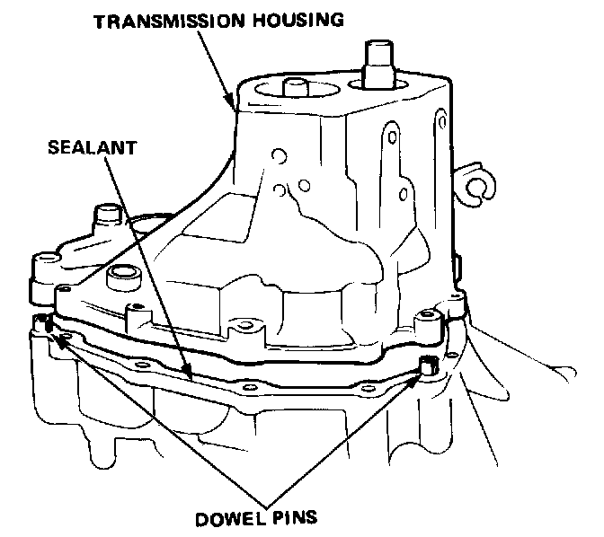 NOTE: This transmission uses no gaskets between the major housings, use Honda sealant, P/N 0874099986.