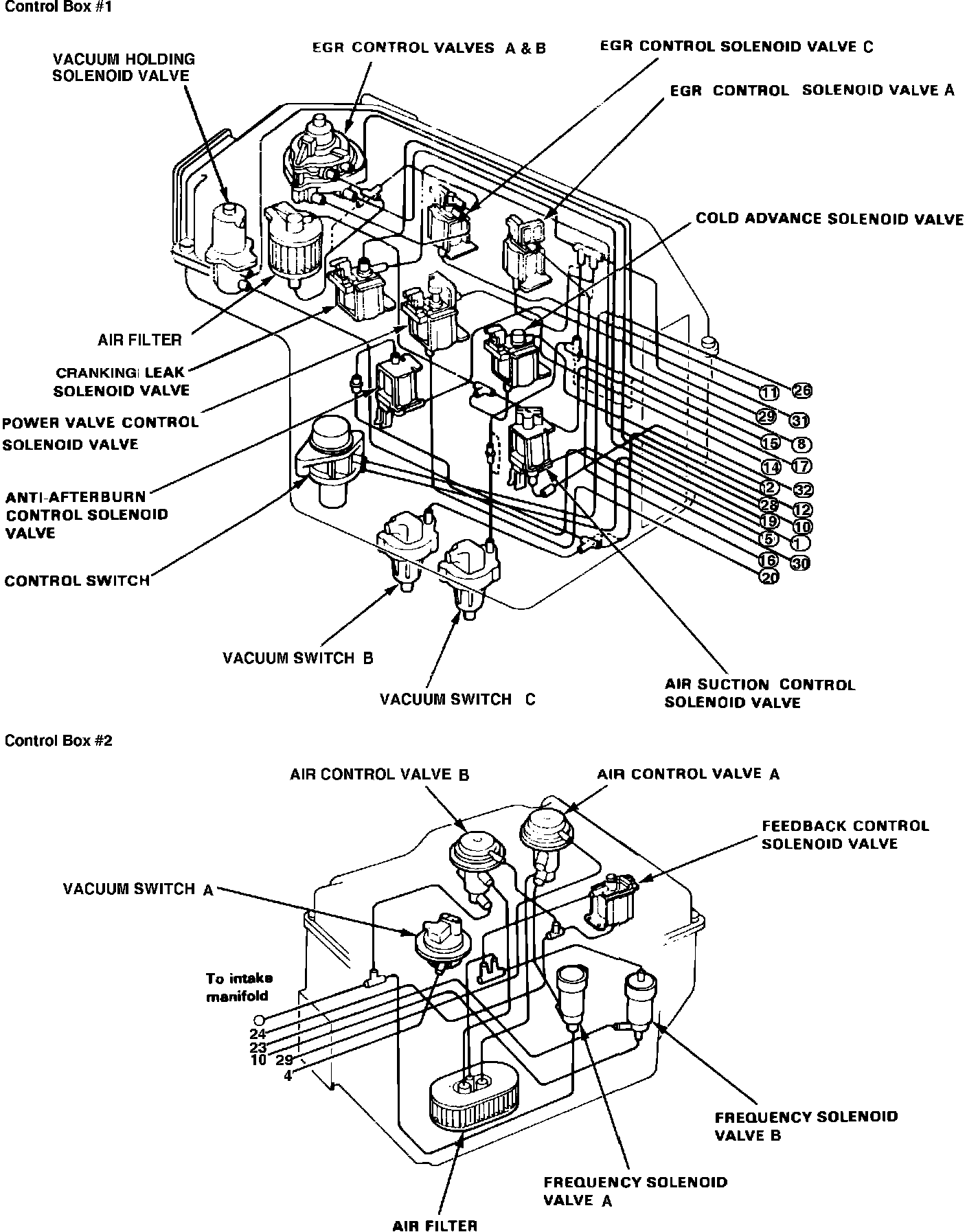 Fig. 35 Control Box Reference Diagram. W/CARB And A/T: